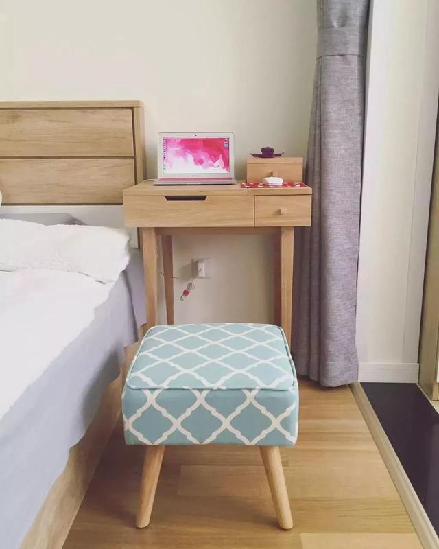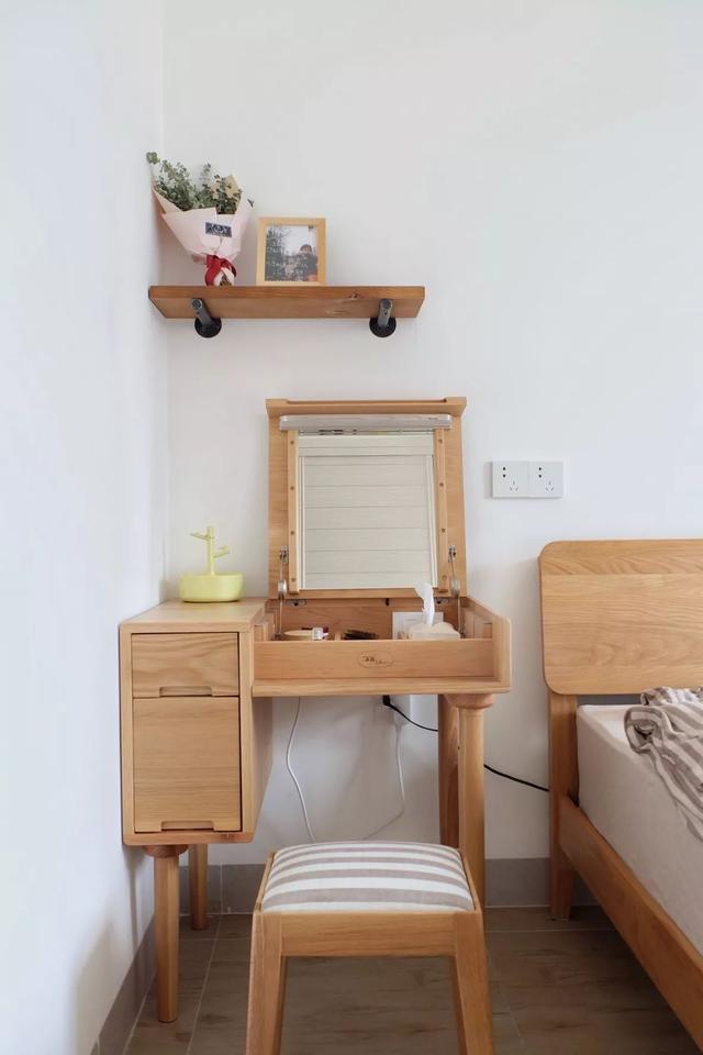 原木色梳妝臺(tái),即可充當(dāng)電腦桌;