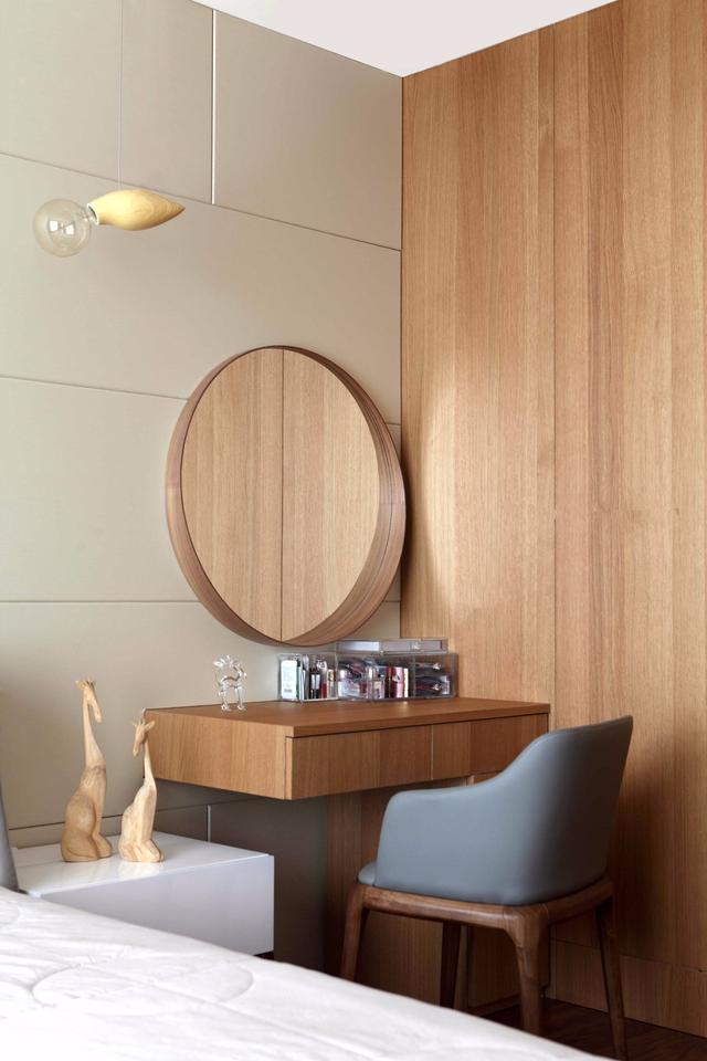臥室面積有限,直接把梳妝臺(tái)做到飄窗;